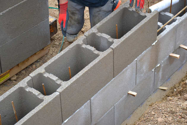 Schalsteine mit Längsbewehrung (Bild: © bauimbild.com)Schalungssteine werden üblicherweise mit Beton ausgefüllt - nur so ist gewährleistet, dass das errichteten Schalsteinmauerwerk entsprechend stabil ist und auch seitlichem Erddruck standhält.