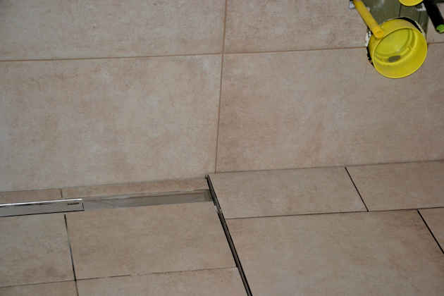 Beispiel Bodenfläche mit Ablauf (Bild: © bauimbild.com)Bei Verlegung von Fliesen auf schwimmendem Estrich muss ein Abstand von 8 bis 15 mm zu Wänden und Türstöcken eingehalten werden. Randdämmstreifen dürfen erst nach der Verlegung von Bodenfliesen abgeschnitten werden.