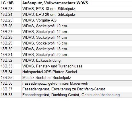Diese Leistungsgruppen / Gewerke sind im Muster-LV Baumeisterarbeiten enthaltenen: (In Klammer die Anzahl der enthaltenen Leistungspositionen).