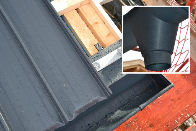 Provisorische Dachrinnenentwässerung (Bild: © bauimbild.com)Verbindungen müssen so ausgeführt werden, dass sich die einzelnen Teile bei Temperaturunterschieden ungehindert verschieben, ausdehnen oder zusammenziehen können, ohne dabei undicht zu werden.