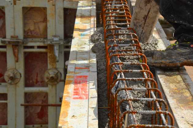 Der verbleibende Hohlraum wird auf der Baustelle mit Transportbeton verfüllt.